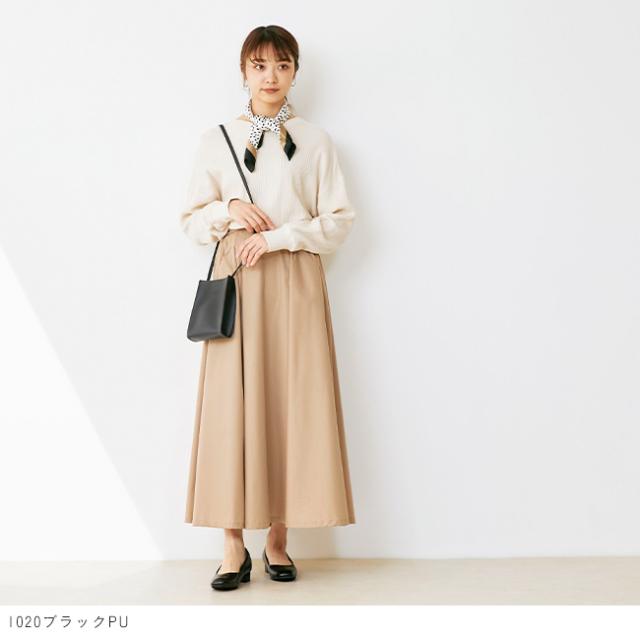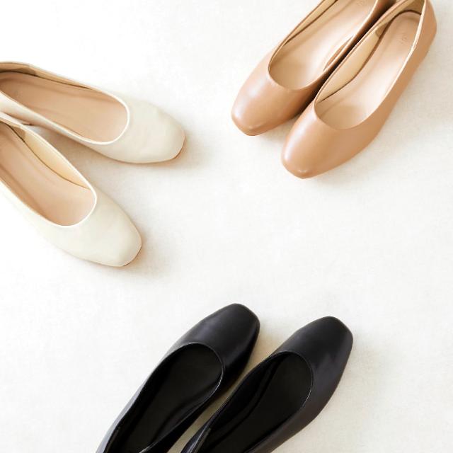 トレンド継続中のスクエアトゥでオシャレにも気を抜かない、シンプルで甘くなりすぎないデザイン。