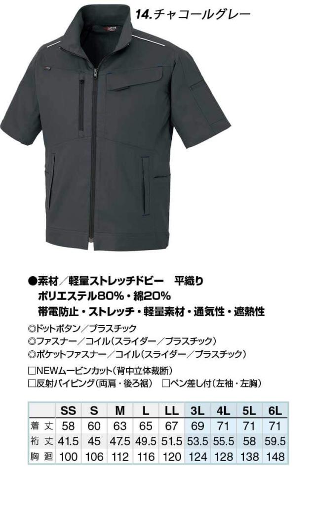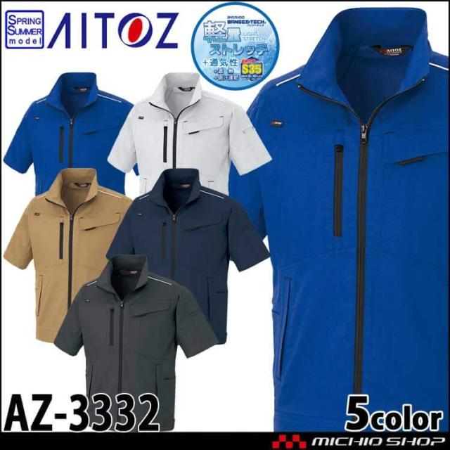 AITOZ アイトス 半袖ブルゾン AZ-3332 軽量 ストレッチ 吸汗速乾 帯電防止 春夏 作業服 男女兼用