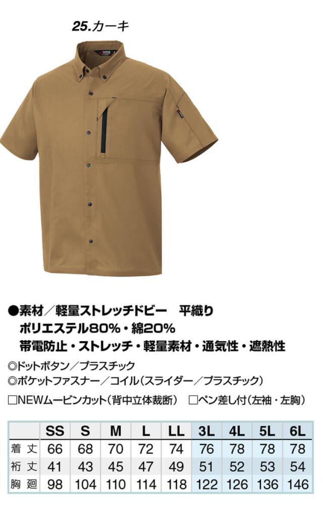 AITOZ アイトス 半袖シャツ AZ-3337 軽量 ストレッチ 吸汗速乾 帯電防止 春夏 作業服 男女兼用