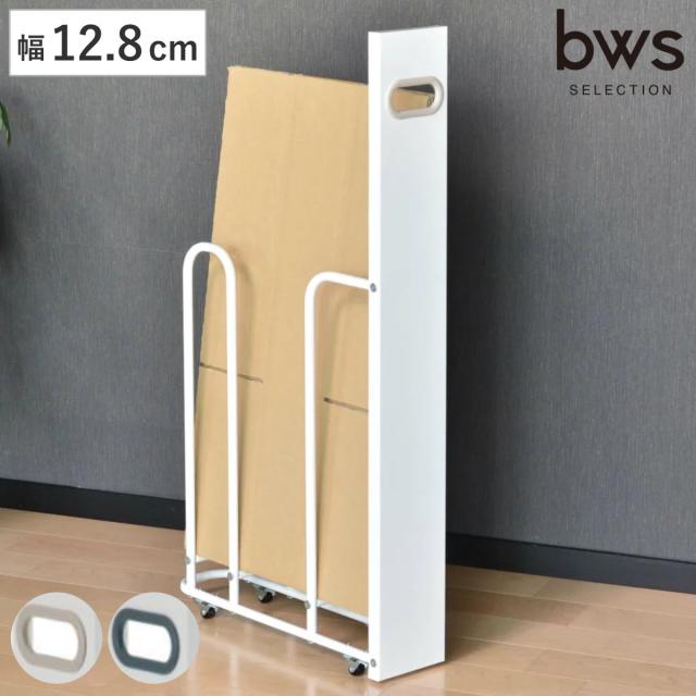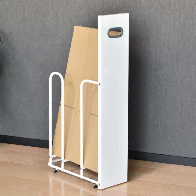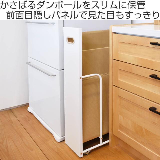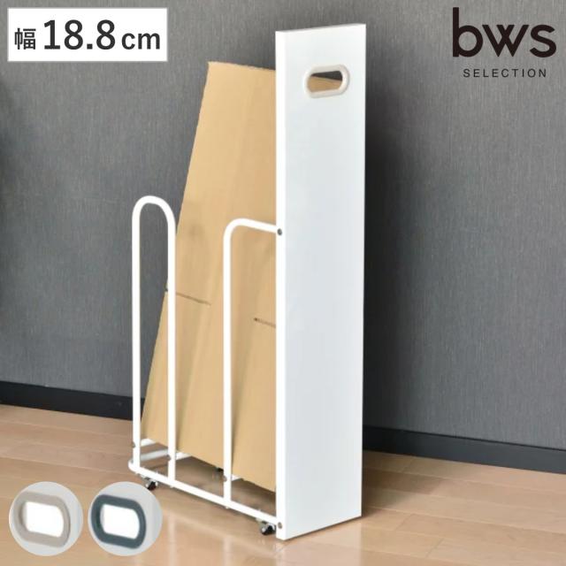 フィレッテ ダンボールストッカー 幅18.8cm ( ダンボール 収納 ストッカー W180 キャスター付 段ボール スリム 目隠し パネル付き 隙間収納 紙袋 段ボールストッカー 古紙 ストック マグネット対応 シンプル 白 )