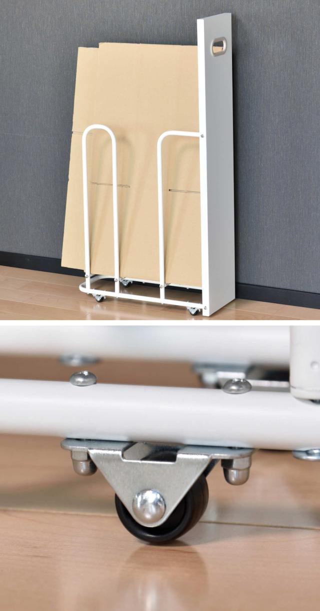 畳んだダンボールを約15枚収納可能で、大小問わず様々なサイズのダンボールを収納できます。(約 幅54×厚み1×高さ76.5cmのダンボール使用)