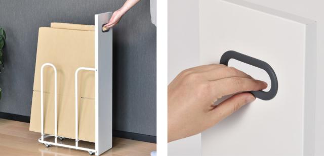 パネル前面には取っ手付きなので、隙間からでもスムーズに出し入れできます。また取っ手は手に馴染んで引き出しやすい柔らかい素材で、手の触り心地にも配慮しています。
