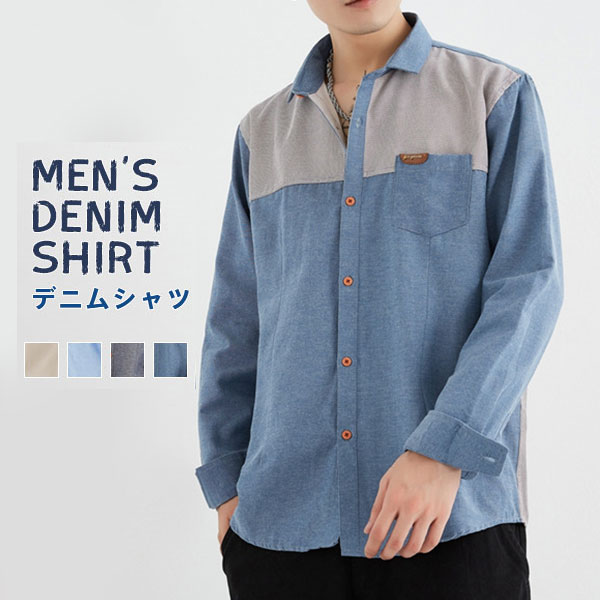 デニムシャツ メンズ 長袖 トップス 無地 カジュアル 柔らかい 通勤 通学 紳士服 スリム ベーシック 前開き 大きめ ギフト おしゃれ 吸汗