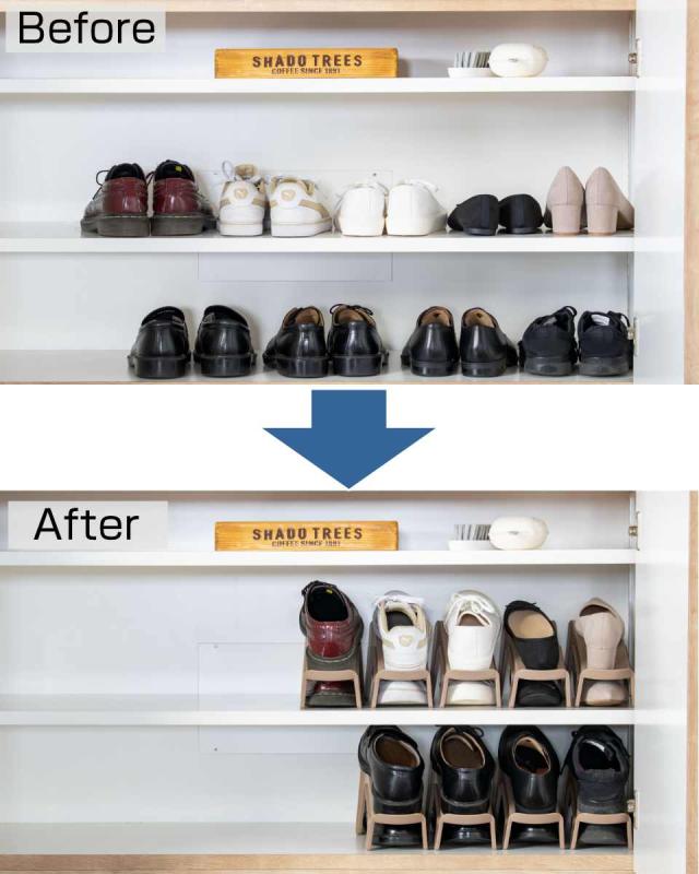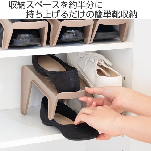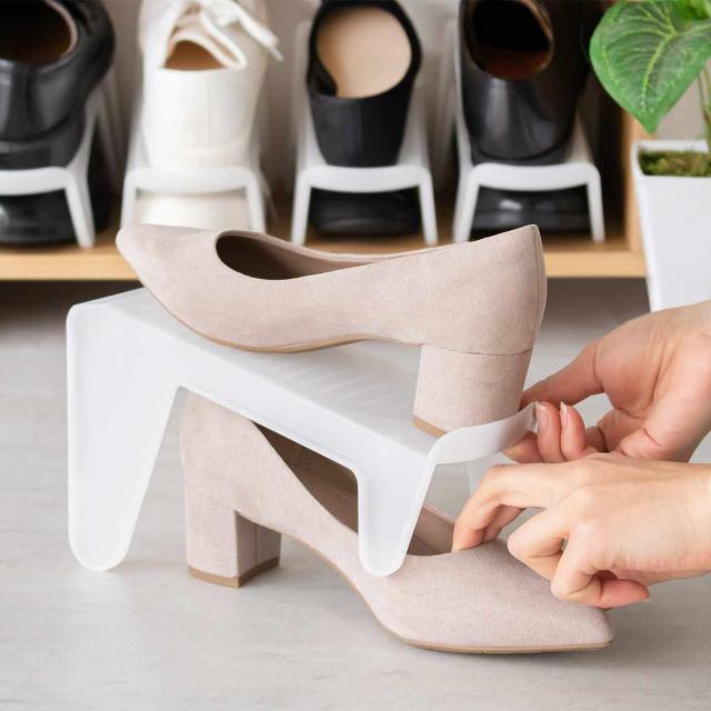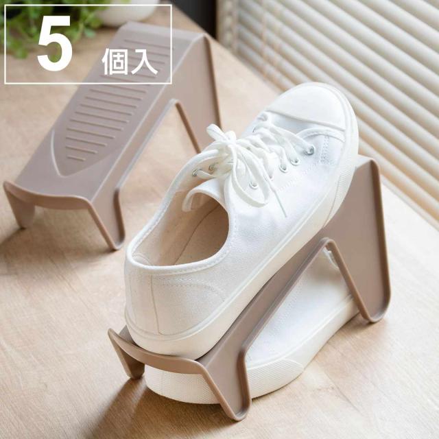 靴1足分のスペースで2足を収納することができる靴収納5個入です。狭い下駄箱スペースを有効活用することで収納力が2倍にアップします。