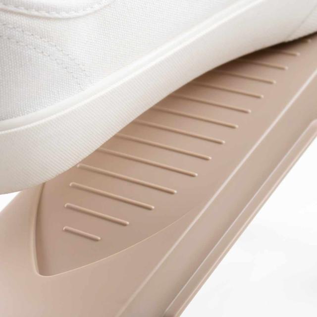 靴の種類に合わせて2種類のストッパー付きです。ヒールのある靴もストッパーで固定されるので、ぐらつきなく安定します。