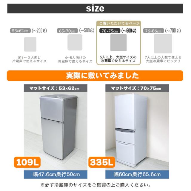 PVCクリア冷蔵庫マット70×75 抗菌 抗カビ 70×75cm キッチン フロア 傷防止 床 北欧 秋 冬 クリア 透明 凹み