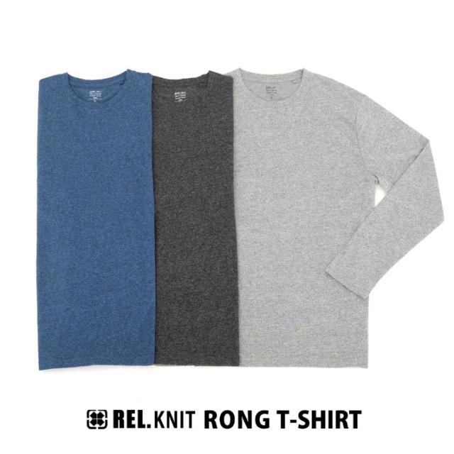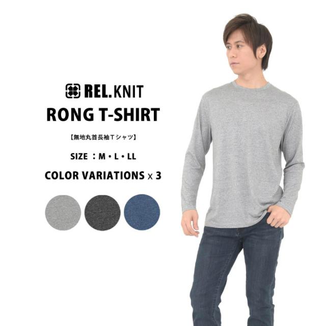 長袖Tシャツ 部屋着に スポーツに 綿混紡 さらっとした肌触り メンズサイズ M L LL【OT-02】REL KNIT 杢カラー 丸首Tシャツ【送料無料】