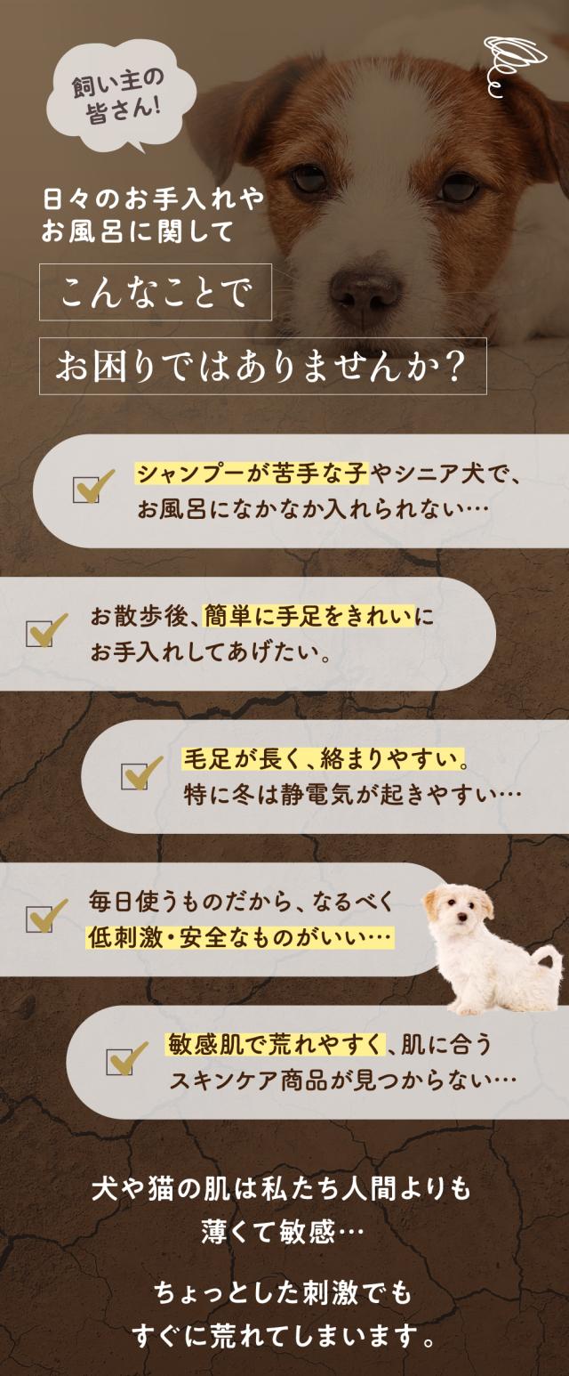 - まず商品到着までが早かったです。そして、使用した感じ使いやすいですし、説明もわかりやすく、フワサラになりました。飼い猫が洗ってもフケが多かったので、保湿もできてキレイになり、良い商品です。