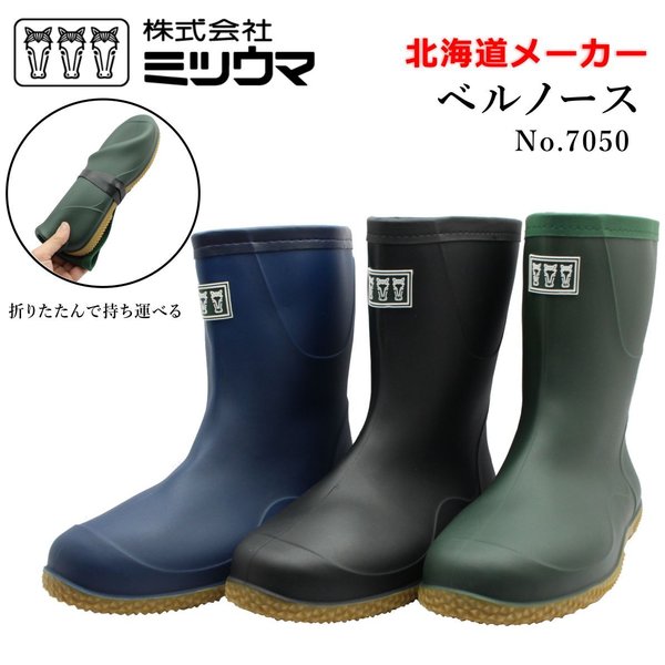 ミツウマ ベールノース 7050 長靴 男女兼用 レインブーツ ガーデニング 農作業 アウトドア レインブーツ ショート パッカブル