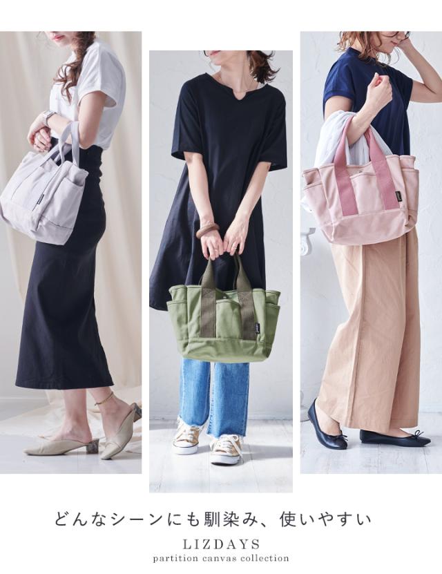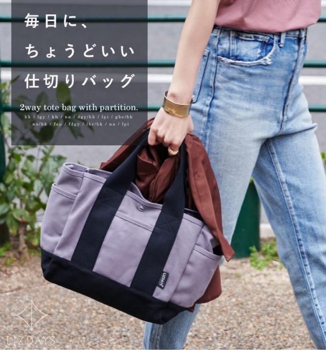 「タイムセール20%off」キャンバス トートバッグ 仕切り レディース マザーズバッグ 大容量 トート キャンバスバッグ 軽量 A4 おしゃれ LIZDAYS リズデイズ ショルダー コットン 帆布 肩掛け 斜め掛けカバン ジムバッグ 旅行 一泊 無地 通勤 通学【lz-70606】