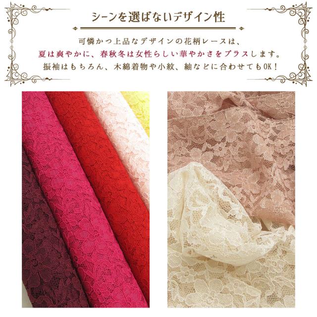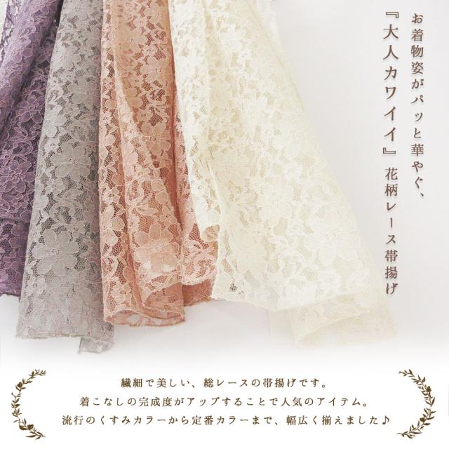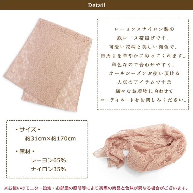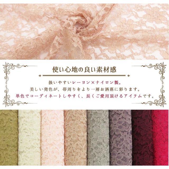 【2枚までメール便発送OK】レース 帯揚げ お洒落 日本製 花柄 幅31cm 並尺 約170cm 10色 暖色 赤 ピンク 黄 紫 カラフル くすみ パステル ペール 定番 人気 カラー 和装小物 着付け小物 通年用 お洒落 カジュアル 着物 訪問着 袷 色無地 小紋 紬 振袖 成人式 卒業式