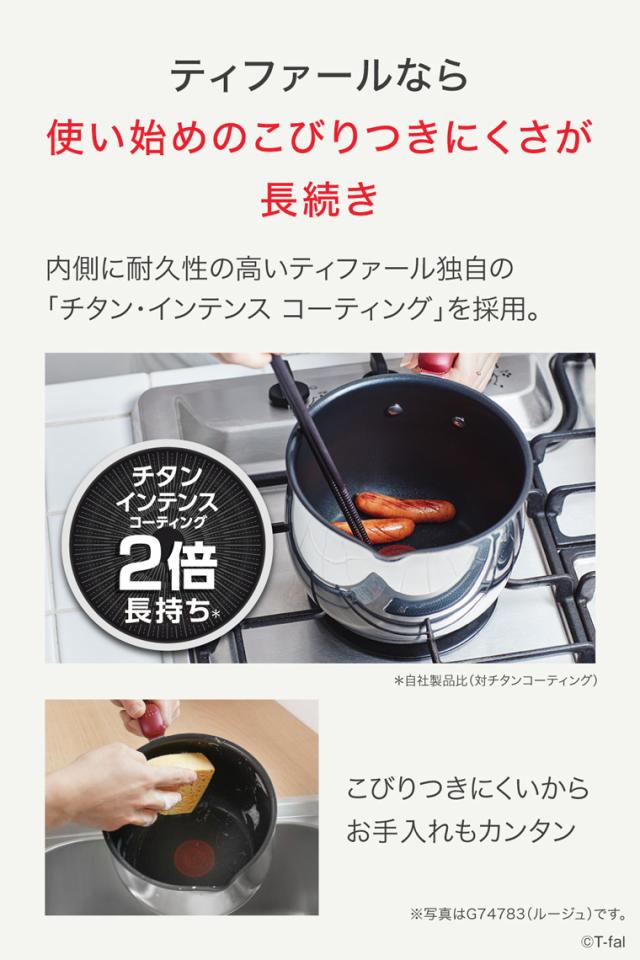 ・内側はチタン・インテンスコーティングで、使い始めのこびりつきにくさが長く続きます。