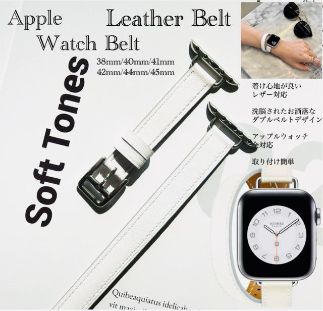4 アップルウォッチ ベルト バンド スマートレザーバンド 革 レザーベルト 2重巻き ロング ダブル バックル 時計ベルト 男女兼用 ホワイト apple watch