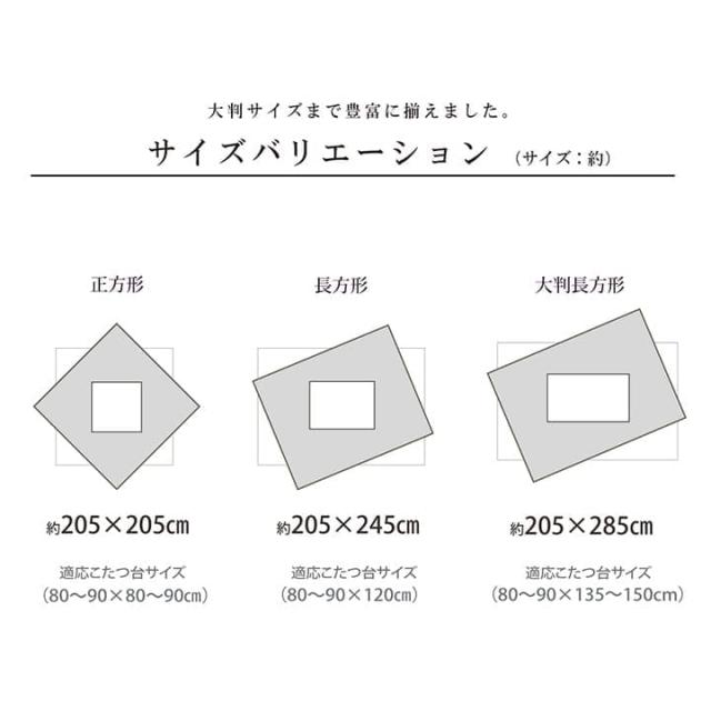 ■適応こたつ布団サイズ:80〜90×80〜90cmのこたつ台対応