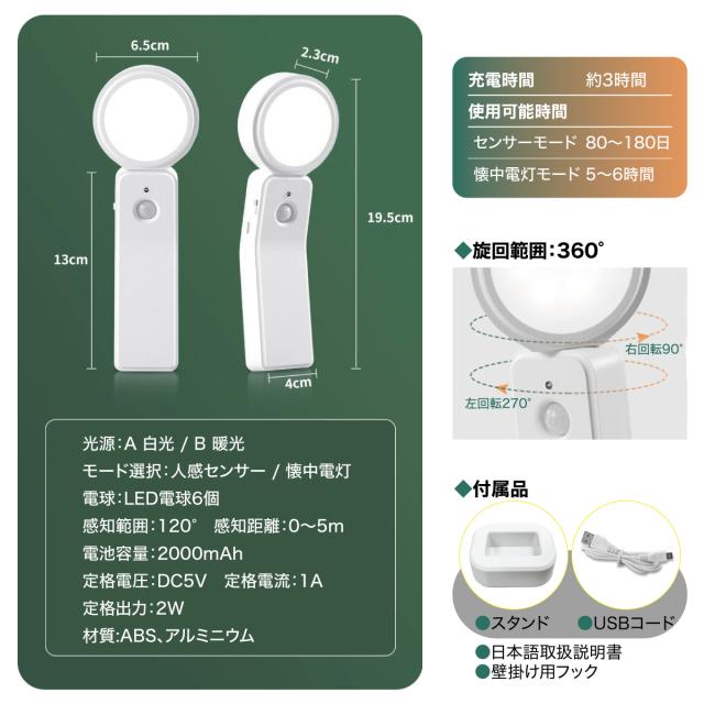 センサーライト 屋内 人感センサー付き LED ライト ハンディライト usb 感知式 照明 スタンド 小型 玄関 クローゼット 廊下 sl-919