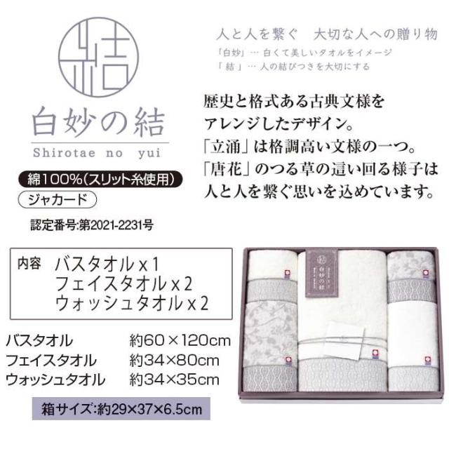 タオルギフト ボックス入り 贈り物に最適 白妙の結 タオルギフト タオル ギフト 贈り物 プレゼント 贈答 御礼 お返し 返礼 お祝い ボックス入り 箱入り BOX入り ギフトボックス入り 綿100% コットン 綿 今治タオル 上質 新生活 引越 ご挨拶 誕生日 母の日 父の日 敬老の日