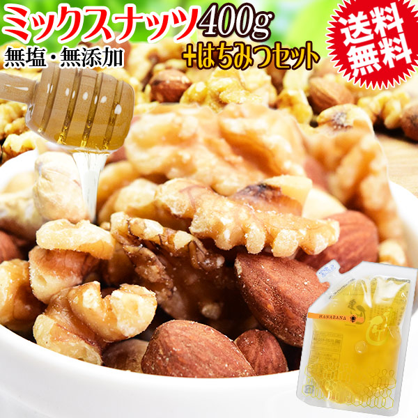 【2026年1月15日以降の発送予定】 無添加 無塩 3種 ミックスナッツ 400g と 国産はちみつ 140g ナッツハニーセット 送料無料 メール便限定 蜂蜜 ハチミツ