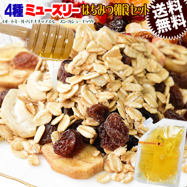 【2026年1月15日以降の発送予定】 ミューズリー 無塩 600g と 国産はちみつ140g ナッツハニー朝食セット メール便限定 送料無料 蜂蜜 ハチミツ