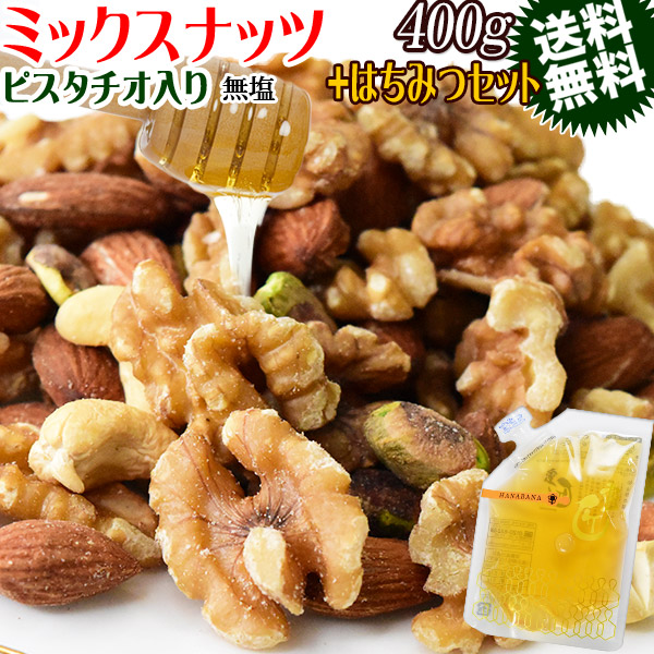 【2026年1月15日以降の発送予定】 無塩 無添加 4種 ミックスナッツ 400g と 国産はちみつ 140g 生くるみ 素焼きアーモンド カシューナッツ ピスタチオ ナッツハニーセット 送料無料 メール便限定 蜂蜜 ハチミツ
