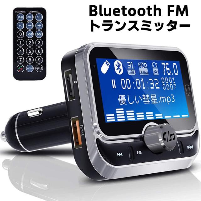 カー Bluetooth FM トランスミッター 高音質 ハンズフリー通話 MP3 有線接続 AUX-IN OUT両方対応 Siri Google Assistant対応 カーチャージャー 超大ディスプレイ搭載 リモコン付き 日本語説明書付き bluetooth 送料無料