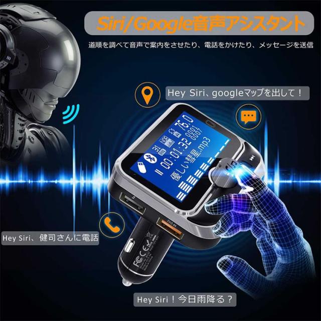 カー bluetooth FM トランスミッター 高音質 ハンズフリー通話 MP3 有線接続 AUX-IN OUT両方対応 Siri Google Assistant対応 カーチャージャー 超大ディスプレイ搭載 リモコン付き 日本語説明書付き 送料無料