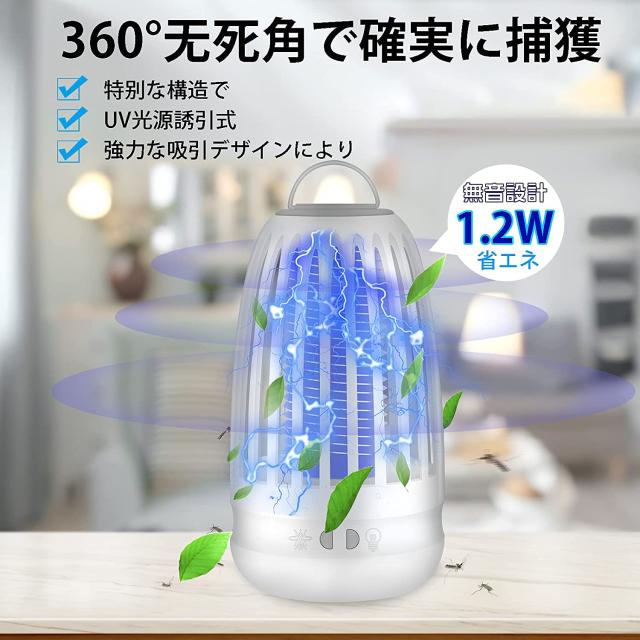 【超強い電撃殺虫器】 この誘虫灯は5Wの補虫蛍光管を内蔵してパワーアップ、従来品より有効範囲が広がりまして、360°全方位スキャナーしたりして蚊などを誘惑します。パシッとなどの騒ぎがなしに、火もなしに、内部には密集な静電ネット式な設計なので、虫などを逃げられないです。昼夜を問わずいつでも連続して静音で動作することができます(働いた時の音<35dB)。