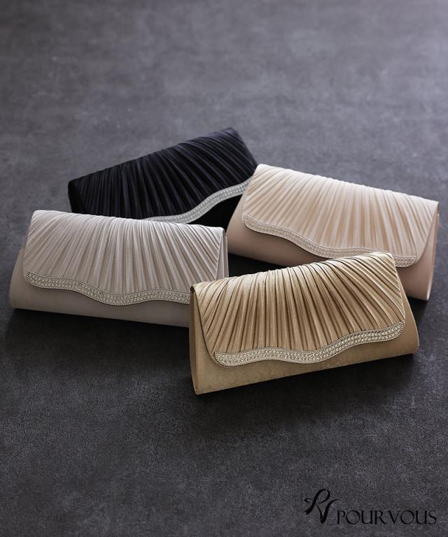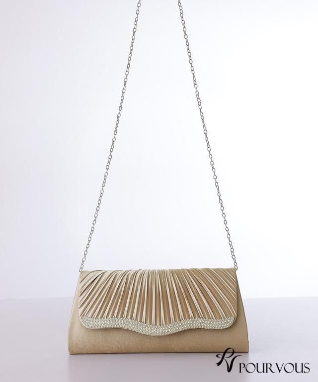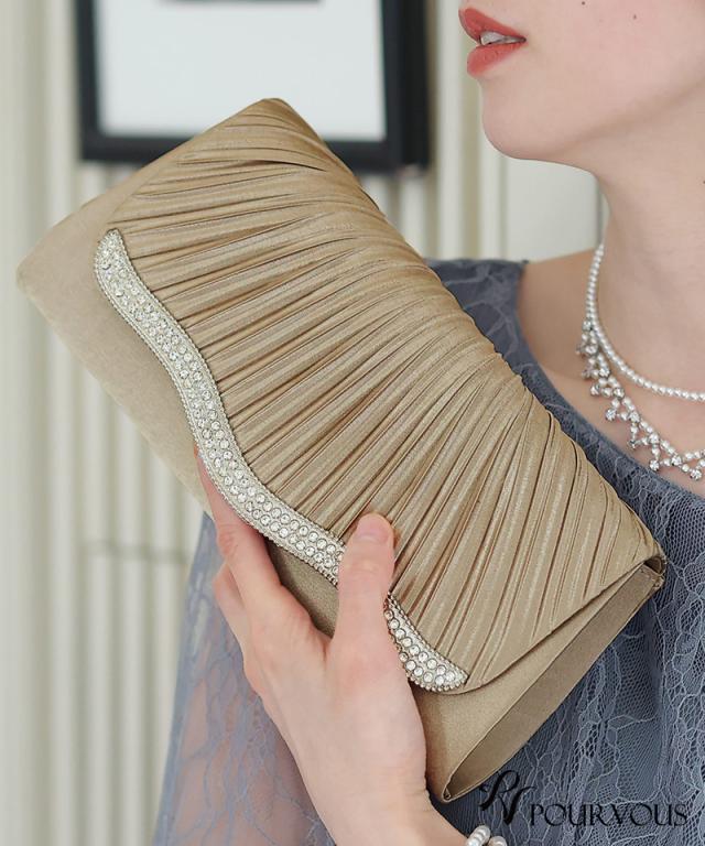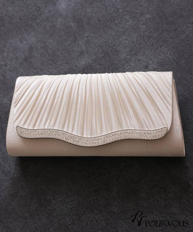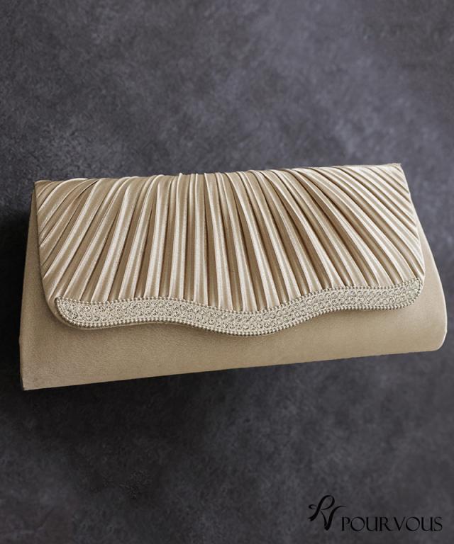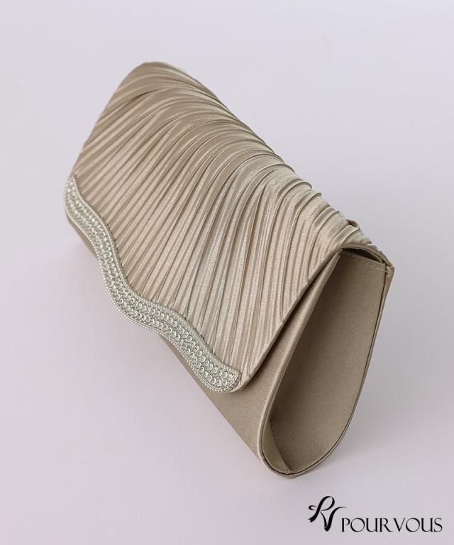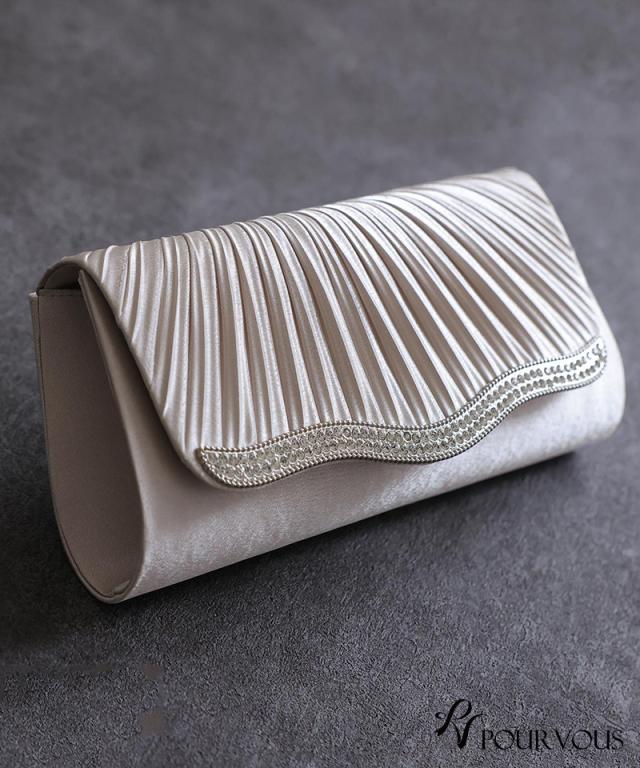 サテンプリーツクラッチバッグ【124221232】20代・30代・40代・50代パーティーバッグ・クラッチバッグ・サテン・マグネット・ラメ・ビジュー・プリーツ・ハンドバック・ベージュ・ブラック・シルバー・クリーム・ラインストーン・パール・フォーマル・シンプル・大容量・結婚式・二次会・同窓会・お呼ばれ・謝恩会・お宮参り・女子会・デート・入学式・卒業式・パーティー・冠婚葬祭