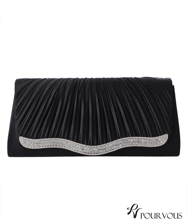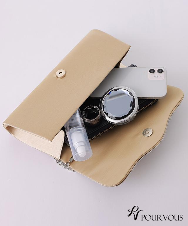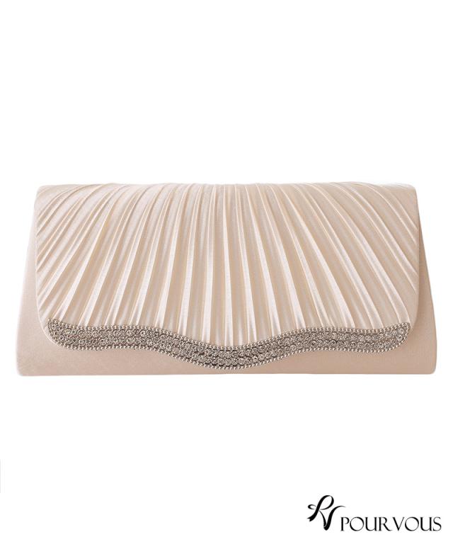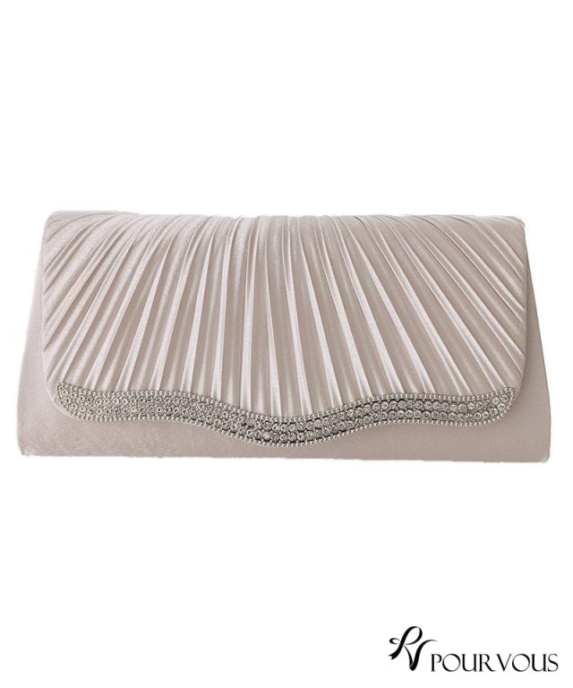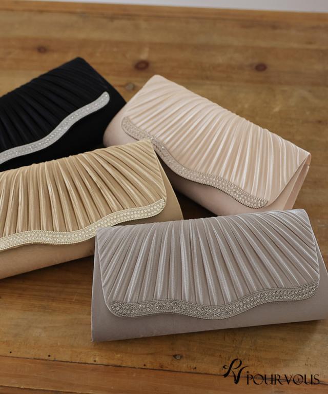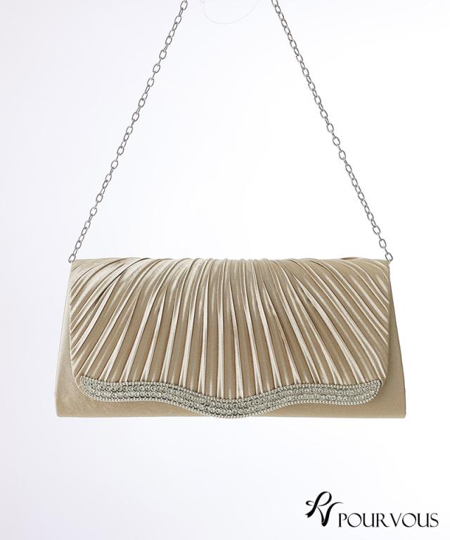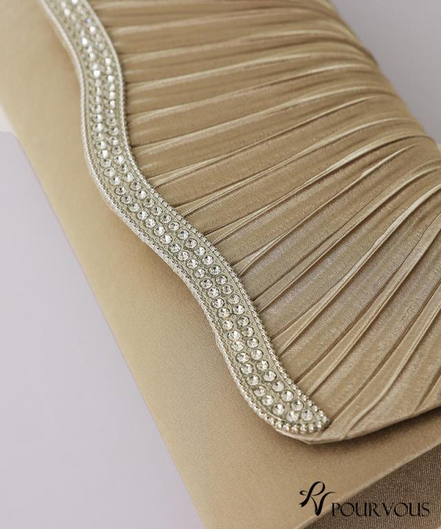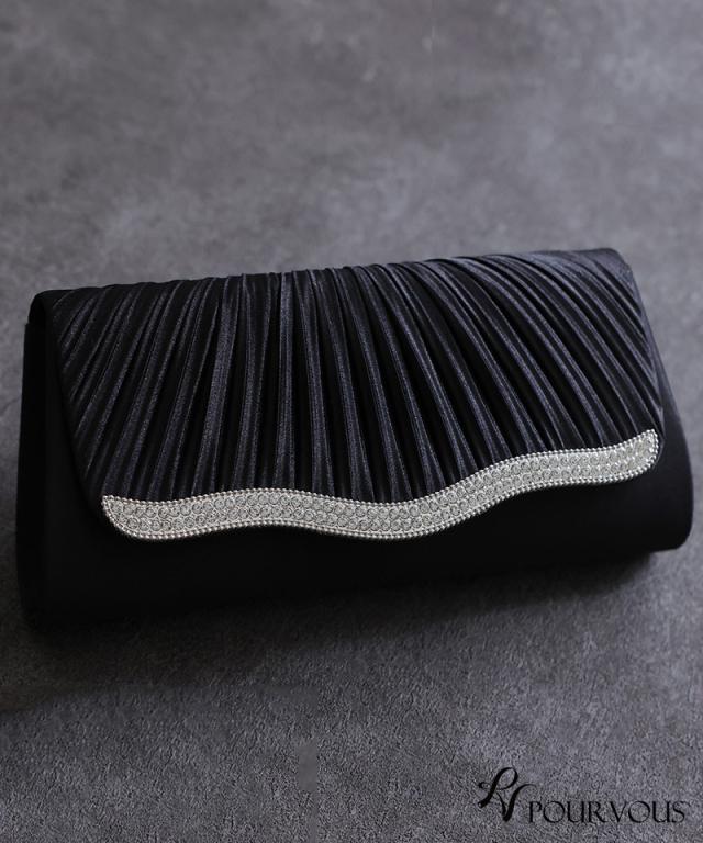 サテンプリーツクラッチバッグ【124221232】20代・30代・40代・50代パーティーバッグ・クラッチバッグ・サテン・マグネット・ラメ・ビジュー・プリーツ・ハンドバック・ベージュ・ブラック・シルバー・クリーム・ラインストーン・パール・フォーマル・シンプル・大容量・結婚式・二次会・同窓会・お呼ばれ・謝恩会・お宮参り・女子会・デート・入学式・卒業式・パーティー・冠婚葬祭