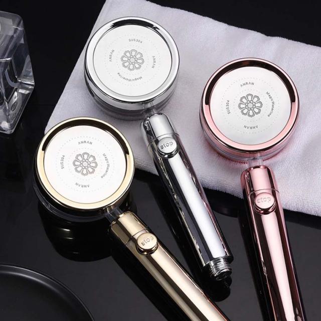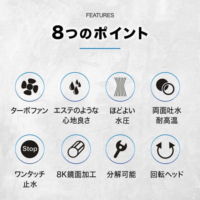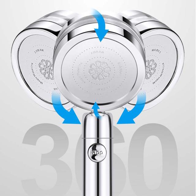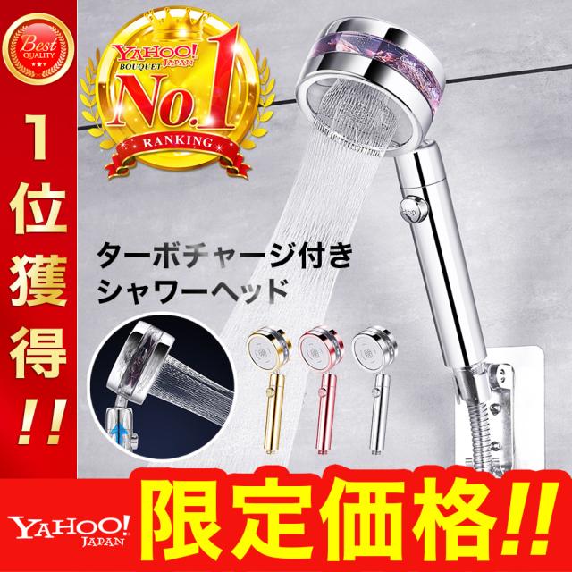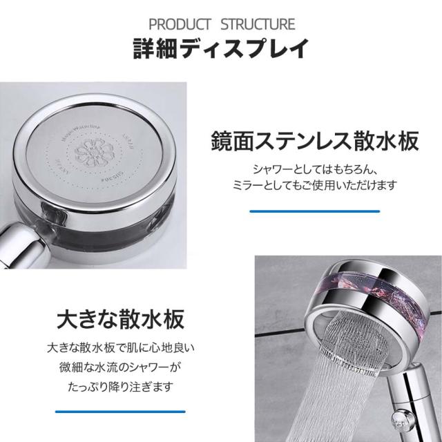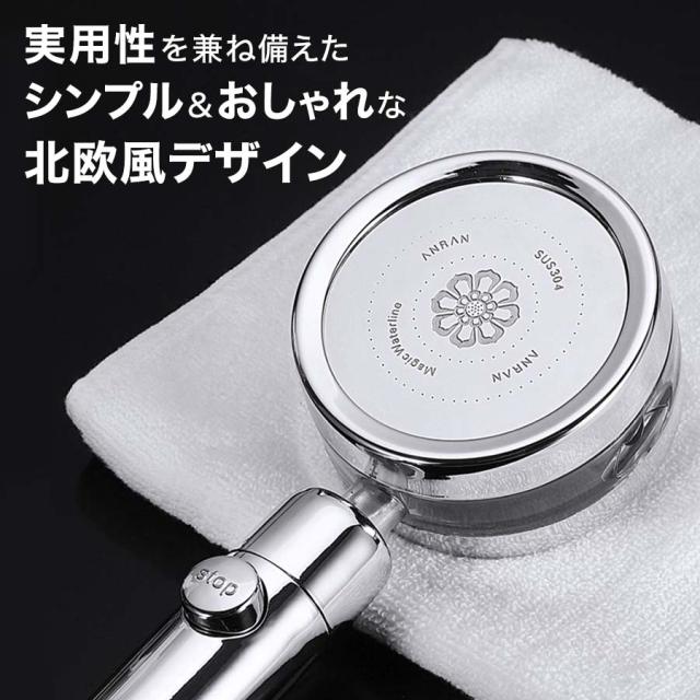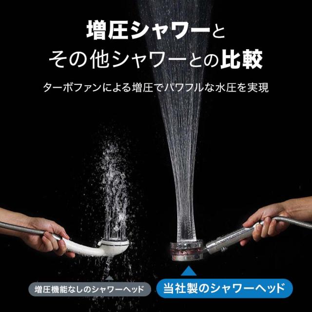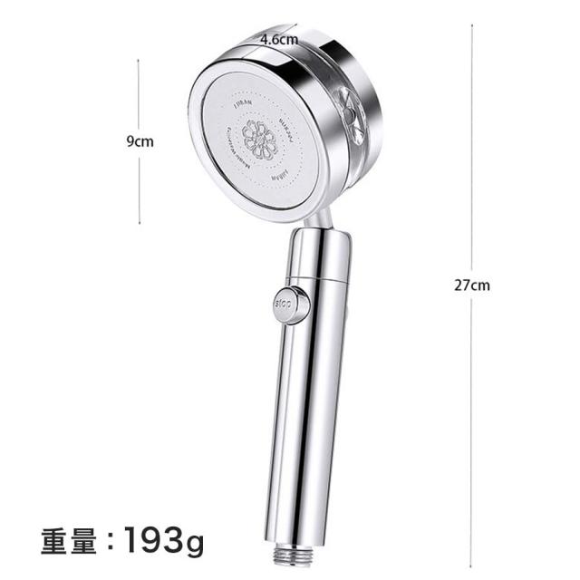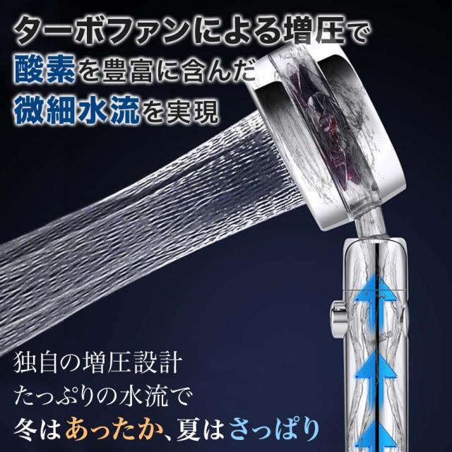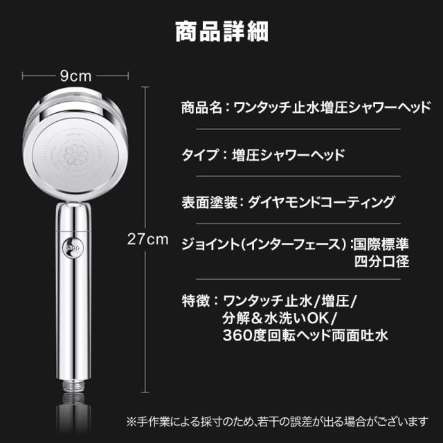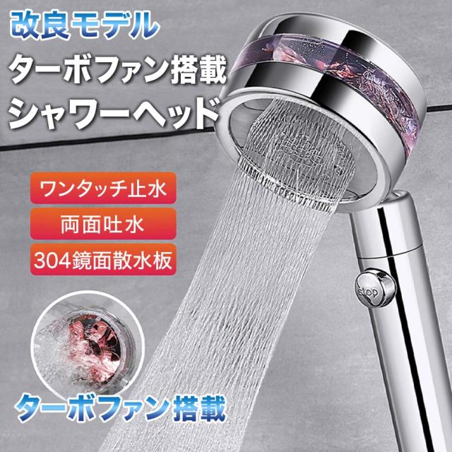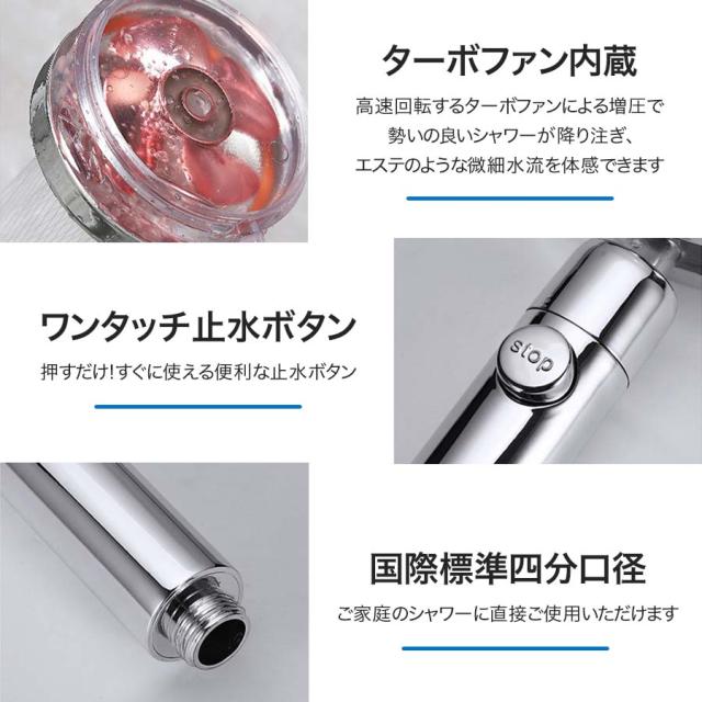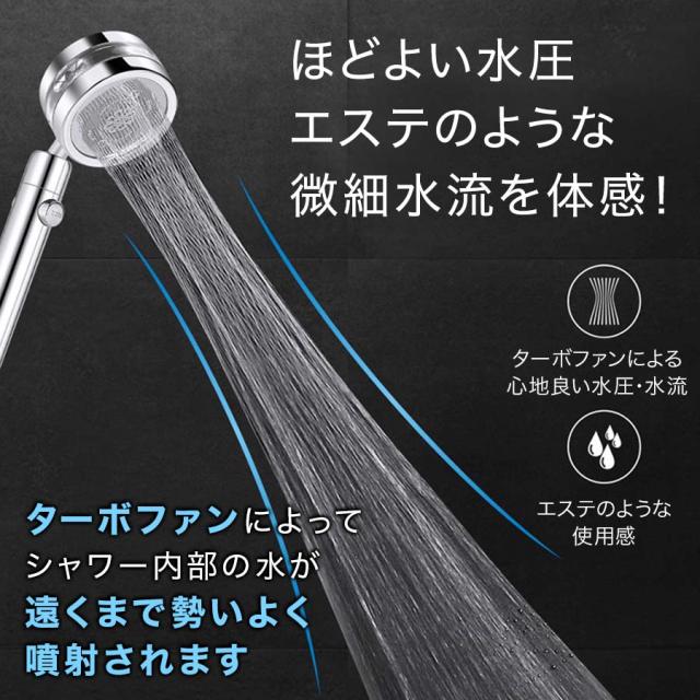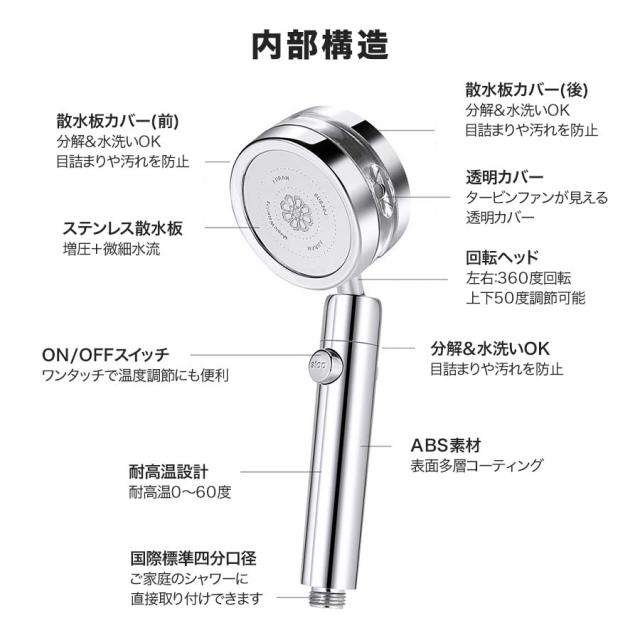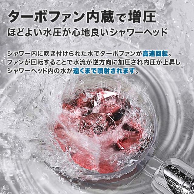 シャワーヘッド 増圧 節水 ターボファン ハンディ 鏡面 微細水流 ミストシャワー シャワー バスグッズ ワンタッチ止水 360℃ アダプタ付き
