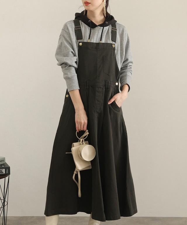 マキシ丈フレアサロペットスカート