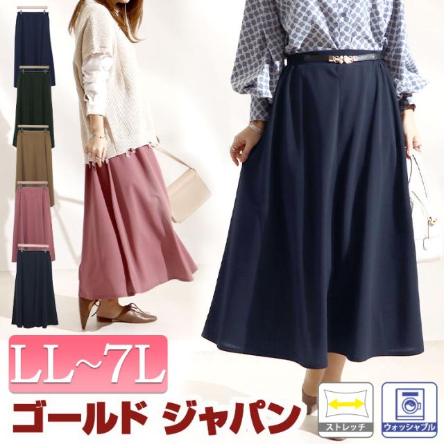 秋新作 大きいサイズレディース ボトムス スカート ストレッチカットソーフレアロングスカート ロングスカート ロング フレア ウエストゴム ストレッチ ポケット 春服 夏服 秋服 LL 2L 3L 4L 5L 6L 7L ブラック 黒 ベージュ カーキ ネイビー モーブピンク ゴールドジャパン