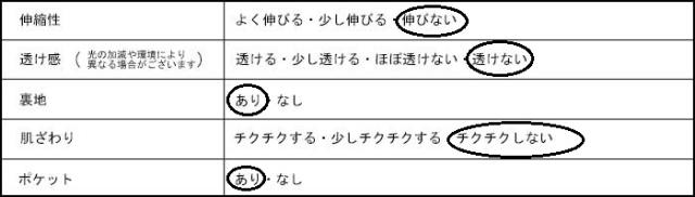 | 素材 | 表地:ポリエステル100% 裏地:ポリエステル100% |