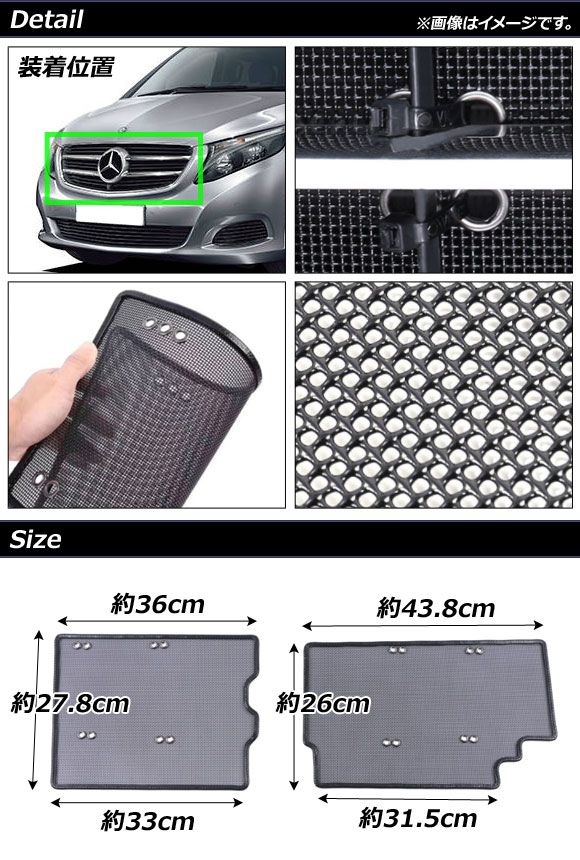 フロントグリルネット メルセデス・ベンツ Vクラス W447 V260 2014年〜 ブラック プラスチック/ステンレス製 入数:1セット(2個) AP-4T1063 AP フロントグリル挿入ネット 防虫ネット グリルネット バグネット ネット グリルカバー メッシュフロントグリル メッシュグリル フロントグリル フロント フロントフェイス グリル カバー ガーニッシュ メッシュ 網 網目 挿入 昆虫 防虫 虫 スクリーニング 侵入 予防 防止 吸気 エアインテーク インテーク ラジエーター ラジエータ ラジエター プラ プラスチック ステンレス 鋼 ステン 黒 BLACK 外装 外装パーツ エクステリア カスタム カスタマイズ パーツ 交換 取り換え 修理 互換 故障 破損 補修 部品 点検