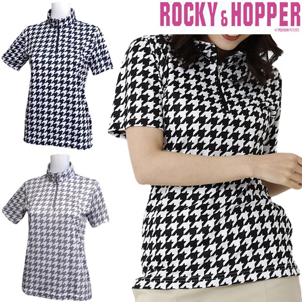 ロッキー&ホッパー レディース ゴルフウェア 千鳥柄 ハーフジップ 半袖シャツ RH-1783SL |