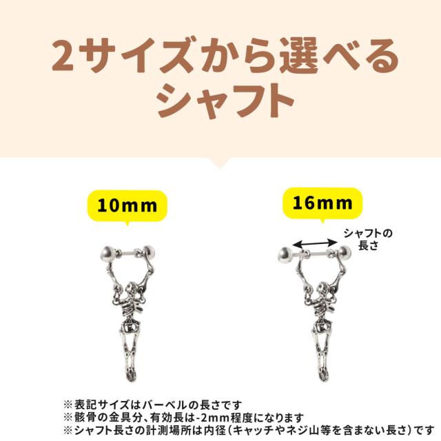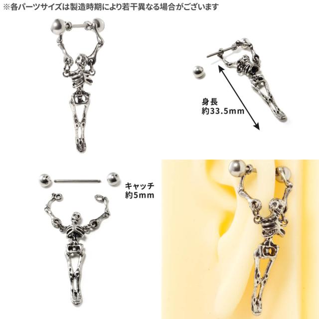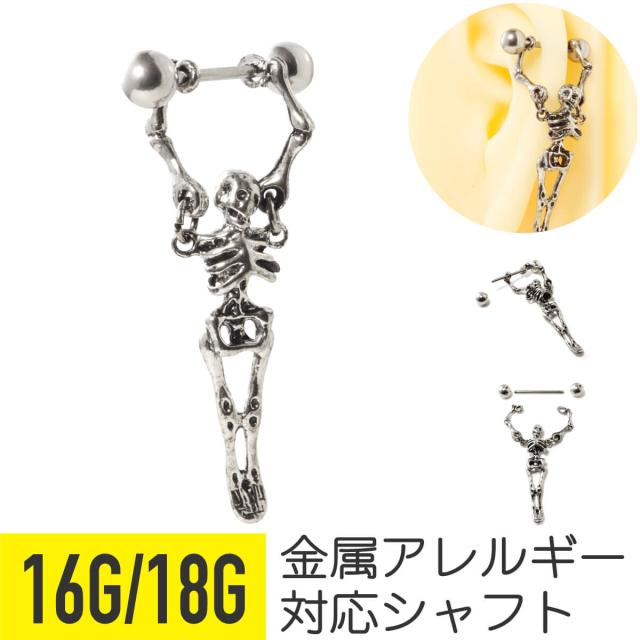 スケルトン ガイコツ シールドピアス 16G 18G サージカルステンレス イヤーロブ ヘリックス 軟骨ピアス ボディピアス スケルトン ガイコツ