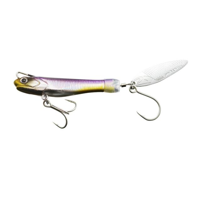 カタクチイワシをデザインベースにしたボディとブレードを持つテールスピンジグ。低重心ワイドボディは圧倒的な飛距離を生むだけでなく、フック絡みを軽減させます。