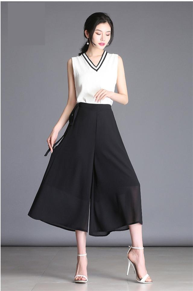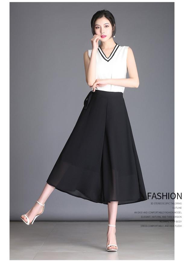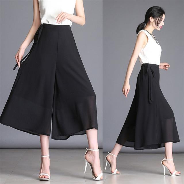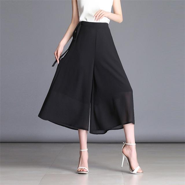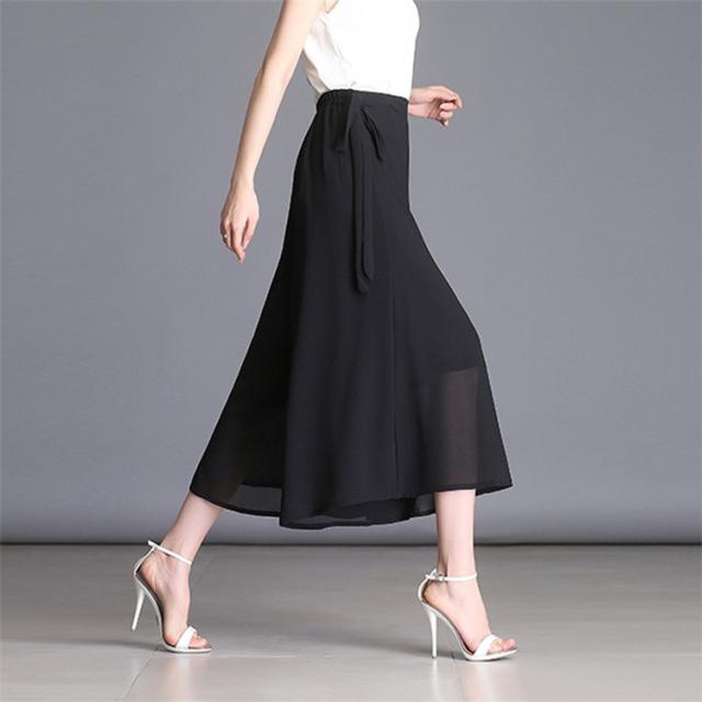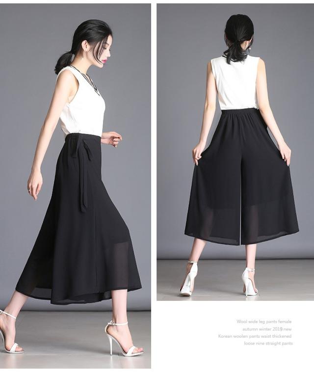 ガウチョパンツ レディース 9分丈 マキシ丈 無地 プリーツ シフォン調 ワイドパンツ ボトムス ゆったり カジュアル 春 夏 秋