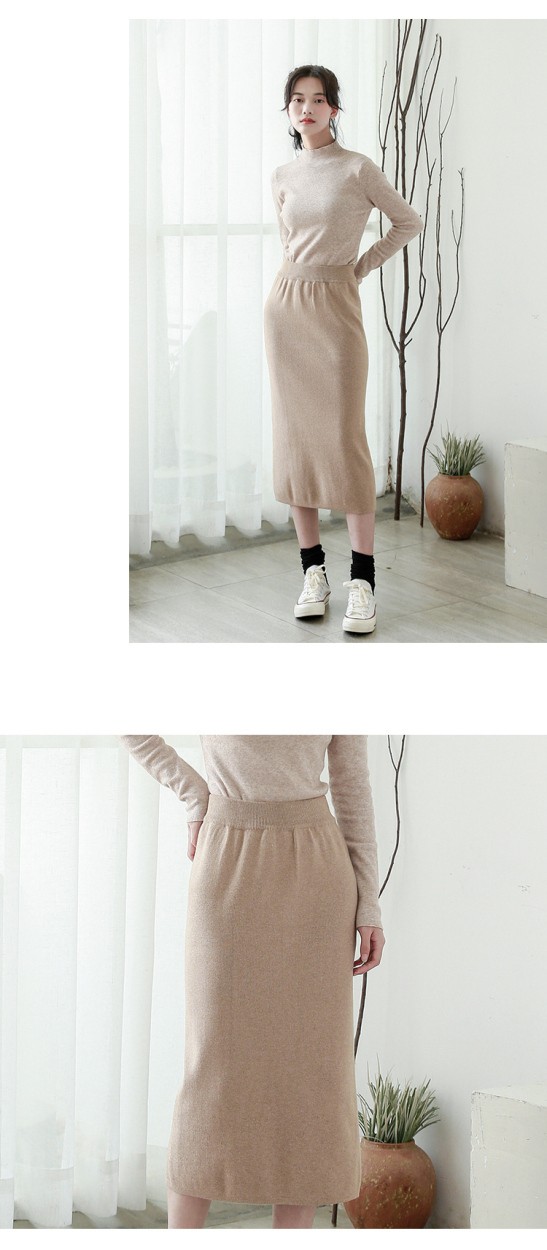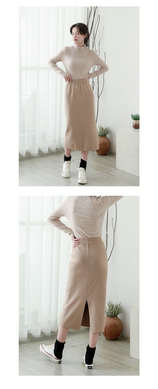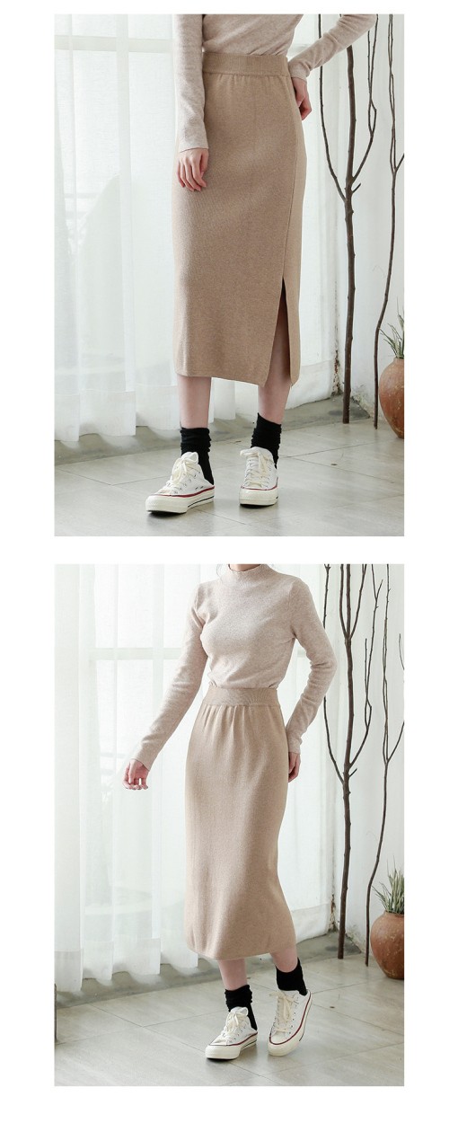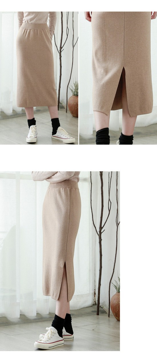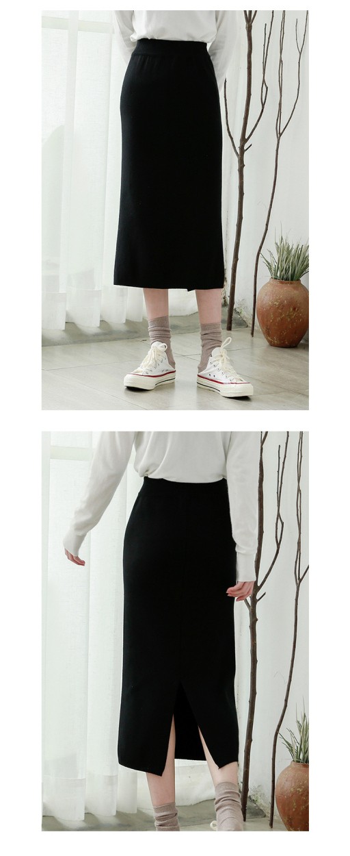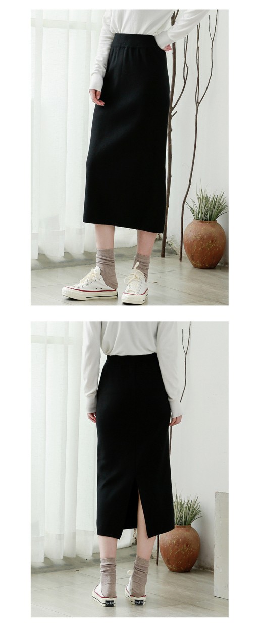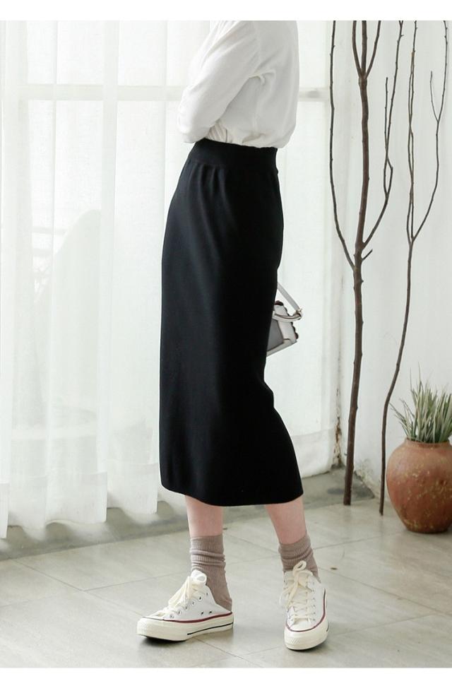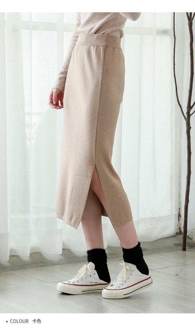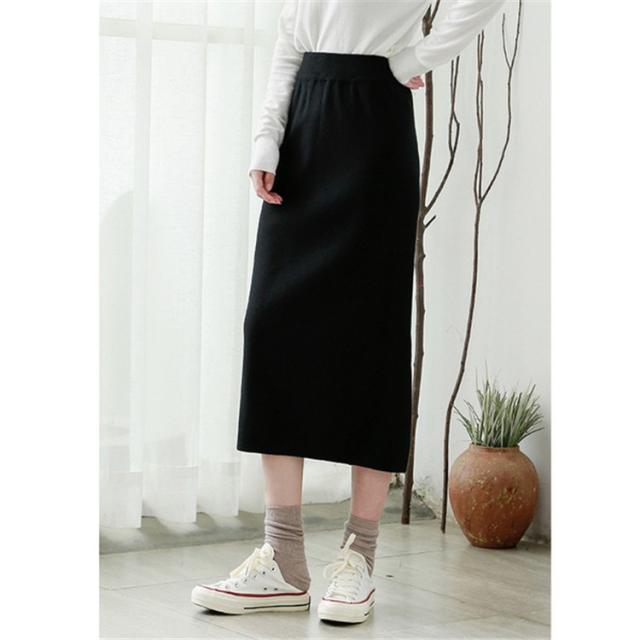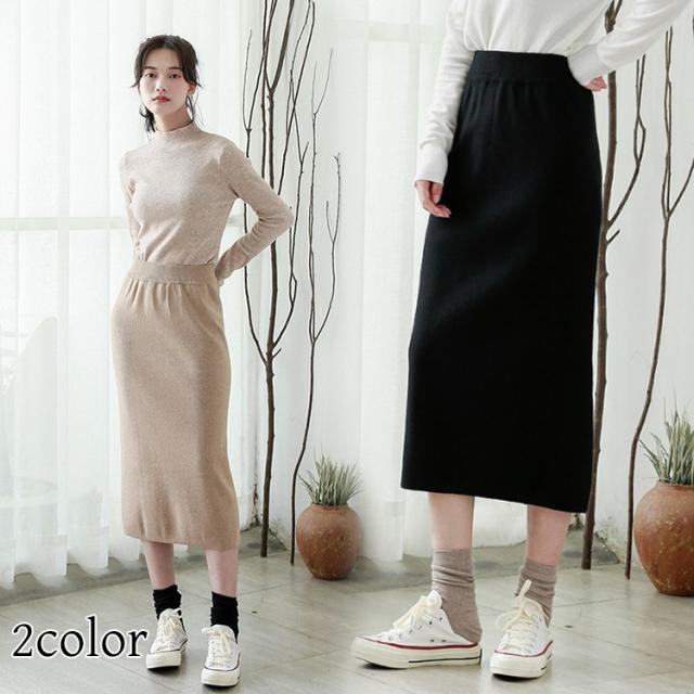 リブスカート リブニット タイトスカート ペンシルスカート スカート スリット ミモレ丈 ボトムス レディース
