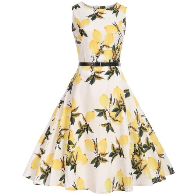 レディース ワンピース ノースリーブ 膝丈 ミディ丈 ミディアム丈 ボートネック 背中ファスナー ウエスト絞り Aライン フレアスカート 春 レモン