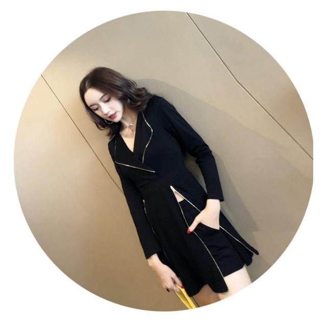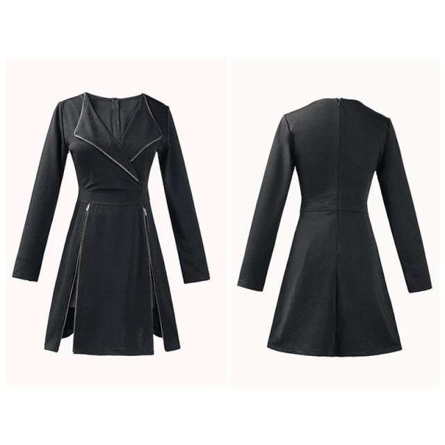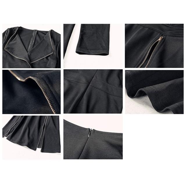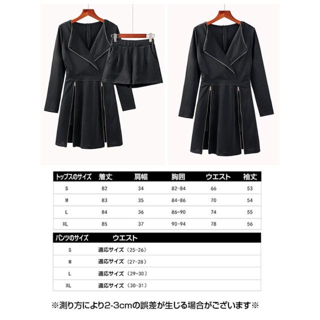 ワンピース風 ツーピーススーツ ワンピース ショートパンツ ジッパー スリット 開襟 長袖 Aライン ショート丈 ミニ丈 スーツ風 セクシー レディー