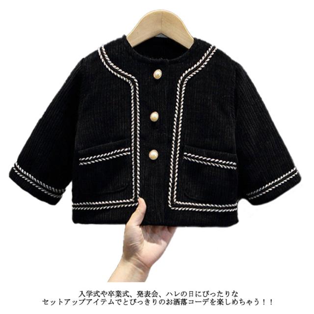 キッズ セットアップ 入学式 春 秋冬 フォーマルスーツ 長ズボン スーツ 韓国子供服 卒業式 長袖 大人ぽっい ノーカラー ジャケット 女の子 七五三 発表会 結婚式 長袖 ブラック 黒 90 100 110 120 ブラウス
