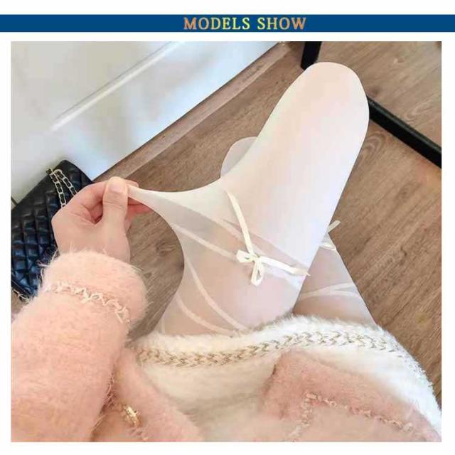 ストッキング 黒ストッキング 【送料無料】可愛いリボンストッキング 着圧 オールスルー タイツ セクシー 白ストッキング 着圧ストッキング セクシーストキング 細足 ブラック 透け感 美脚 黒タイツ