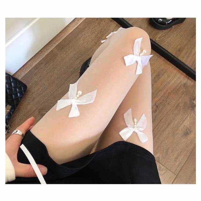 リボン ストッキング 【送料無料】リボンストッキング タイツ 弾性ストッキング セクシー ストッキング 美しい素肌感 柄パンスト 黒ストッキング オールスルー 着圧 可愛い パンスト 柄タイツ つま先スルー 下着 透け感 美脚 細足 黒タイツ