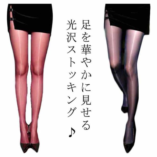 | 足を華やかに見せる光沢ストッキング ♪ 光沢があり程よく透けた素材で、ぱっと相手の目を引くのは間違いなし。 もちろん伸縮性にも優れていますが、しっかりと程よい締め付け感もあり、太ももや脹脛のお肉を整えスレンダーな脚を演出してくれます。 | |