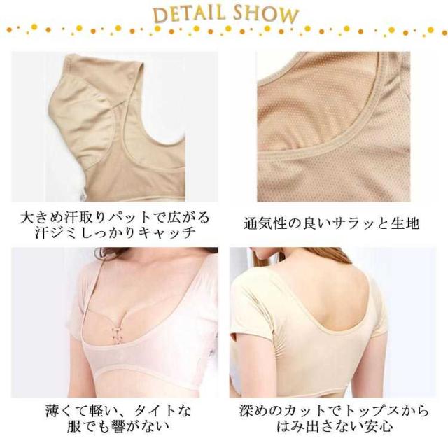 汗取りインナー 汗対策 レディース 汗取りパット付 脇汗 インナー 脇汗 汗染み防止 ワキ汗 半袖 ショート丈 送料無料 送料無料 脇汗 対策 グッズ わきが対策 春 夏 吸収
