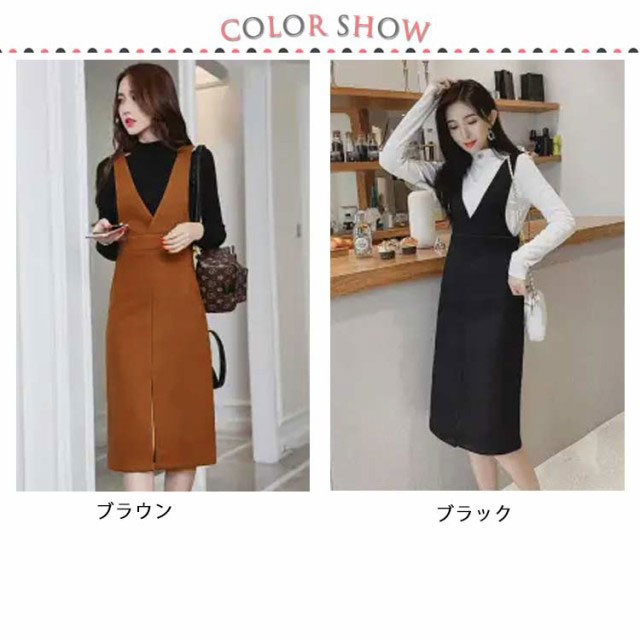 膝丈 きれいめ Vネック レディース ノースリーブ ワンピース 大人 レディース ブラウン オフィス フォーマル 清楚 黒 上品 オフィスカジュアル ロング丈 カジュアル ブラック ジャンパースカート 春 秋 冬 ミスリット入り