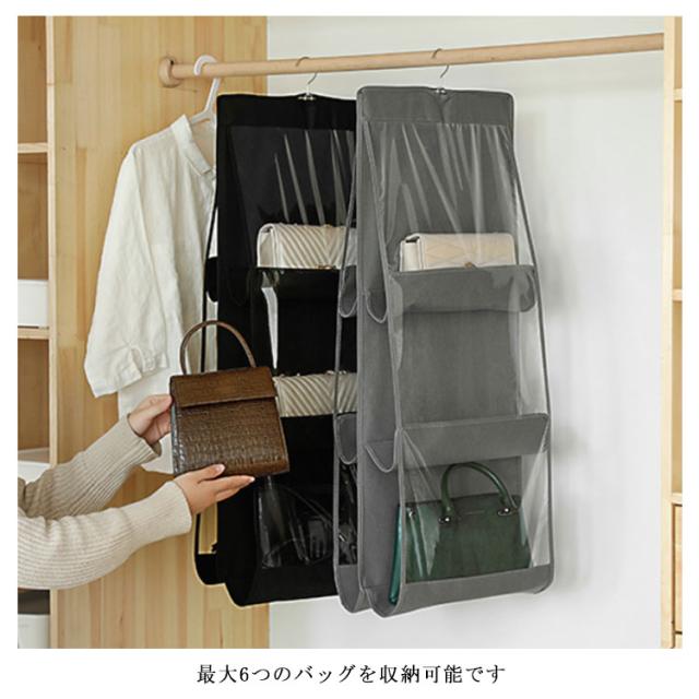 | バッグを見やすくきれいに整頓できるラック付き収納 クローゼットに引っかけるだけの簡単に設置 最大6つのバッグを収納可能です クローゼット内のスペースを有効活用 取り出す際も収納する際も簡単スムーズに行えます | |