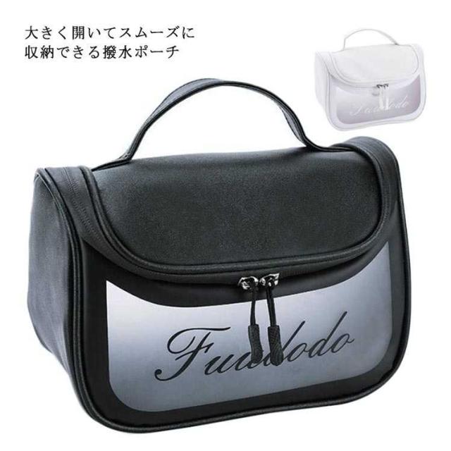撥水 大きめ 小物入れ プレゼント 収納 大容量 メイクポーチ 使いやすい 化粧ポーチ 機能的 【送料無料】コスメポーチ 旅行 便利グッズ ダブルファスナー 持ち手付き 整理整頓 トラベル 無地 ブラック ホワイト レディース