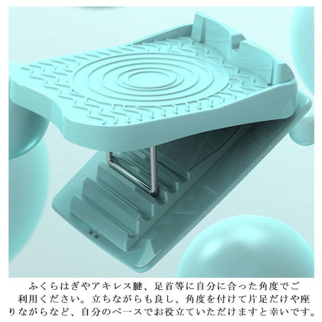 | 多機能使用簡単 ふくらはぎやアキレス腱、足首等に自分に合った角度でご利用ください。立ちながらも良し、角度を付けて片足だけや座りながらなど、自分のペ一スでお役立ていただけますと幸いです。 頑丈で使いやすい&耐荷重150kg 強く耐久性のある素材ABS樹脂。 角度をつけたストレッチボードに立っているだけで脚を伸ばしてストレッチ出来ます。 5段階調節可能なので自分に合った角度に調節して脚を伸ばせます。 リハビリやストレッチに使用しても良し、在宅リモートワークの合間にとっても使うのもオススメです。 | |
