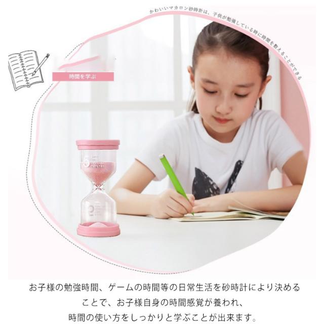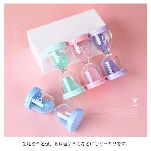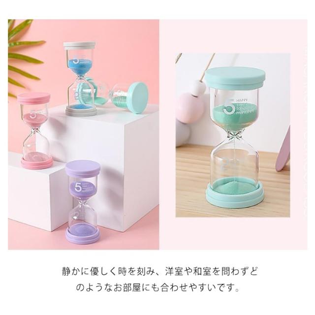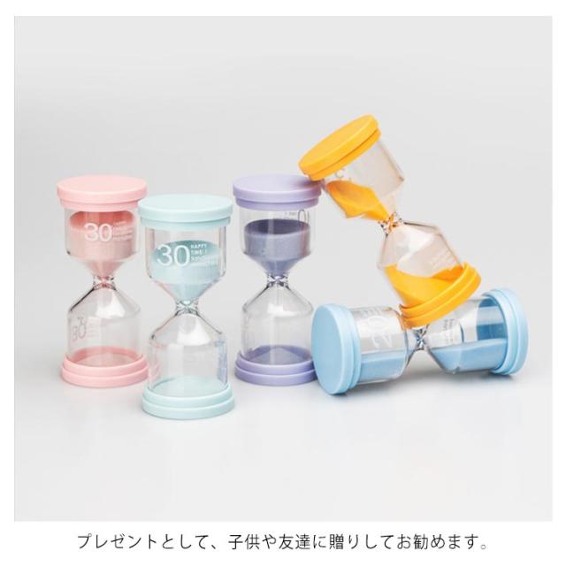 | カラフル砂時計5個セット(3分/5分/10分/15分/20分/30分)! お子様の勉強時間、ゲームの時間等の日常生活を砂時計により決めることで、お子様自身の時間感覚が養われ、時間の使い方をしっかりと学ぶことが出来ます。 シンプルで可愛いデザインが子供も大人も楽しくお使いいただけます。 砂時計タイマーは耐久性と安全性を兼ね備えたガラス管と砂で作られるので、壊れにくく、長くお持ちできます。 歯磨きや勉強、お料理やヨガなどにもピッタリです。 静かに優しく時を刻み、洋室や和室を問わずどのようなお部屋にも合わせやすいです。 プレゼントとして、子供や友達に贈りしてお勧めます。 | |